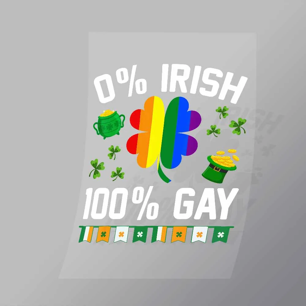 A great 0 Percent Irish 100 Percent Gay DTF (Direct to Film) Transfer available in multiple sizes. (Beased on width at artwork aspect ratio)