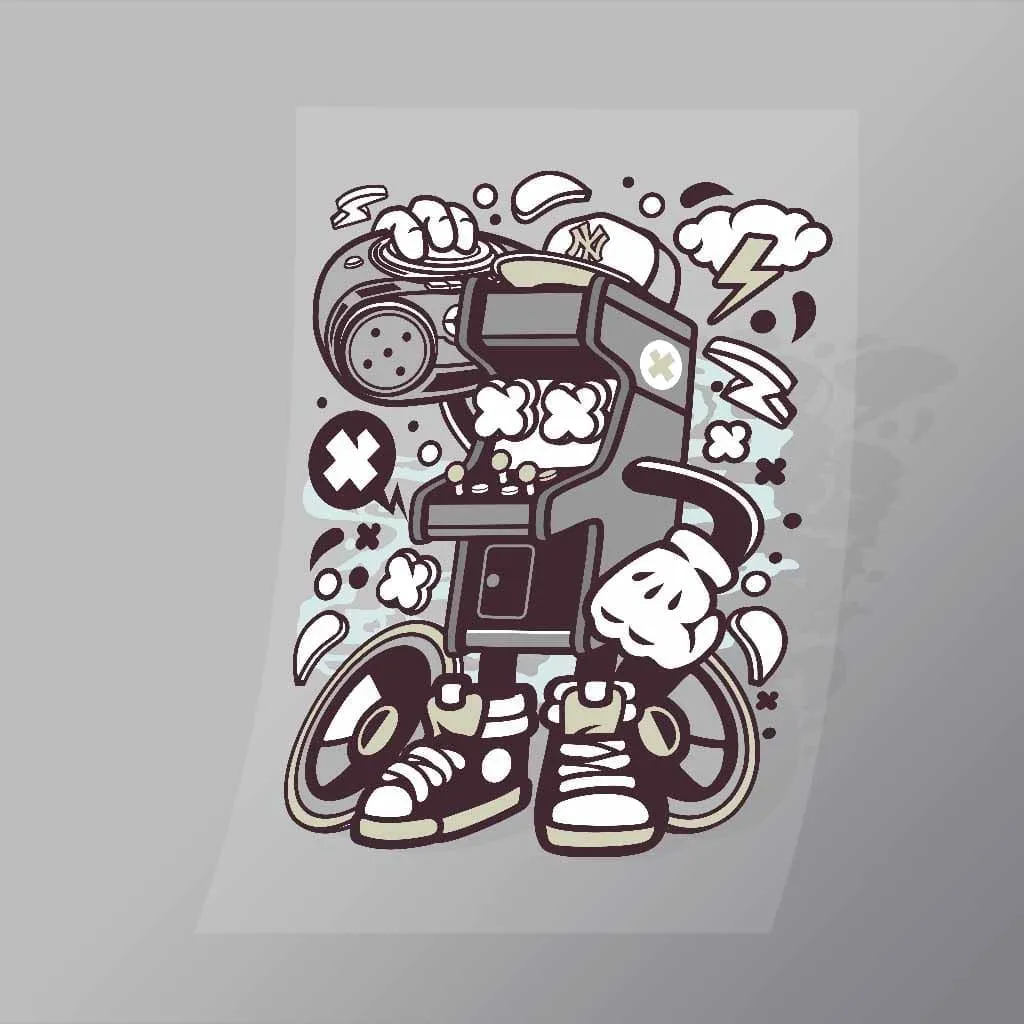 A great Arcade Game Boombox DTF (Direct to Film) Transfer available in multiple sizes. (Beased on width at artwork aspect ratio)