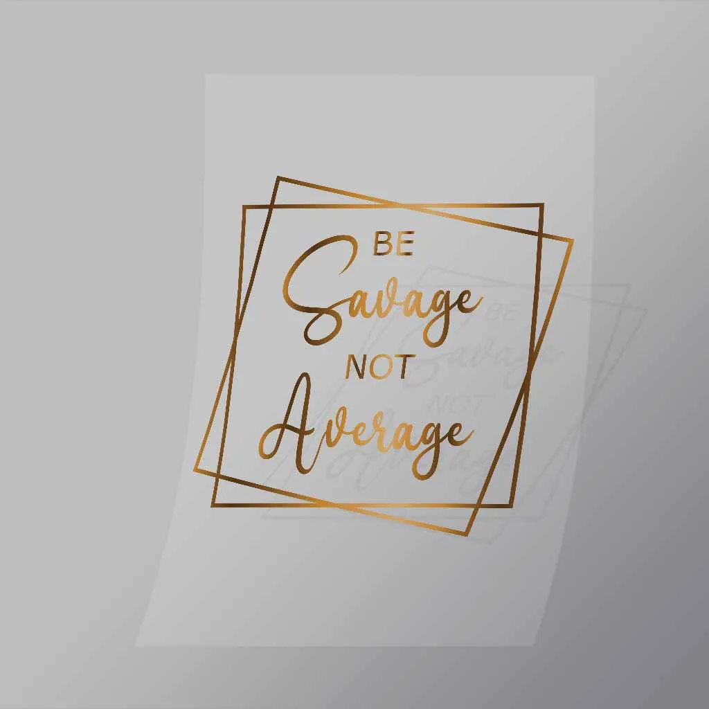 A great Be Savage not Average DTF (Direct to Film) Transfer available in multiple sizes. (Beased on width at artwork aspect ratio)