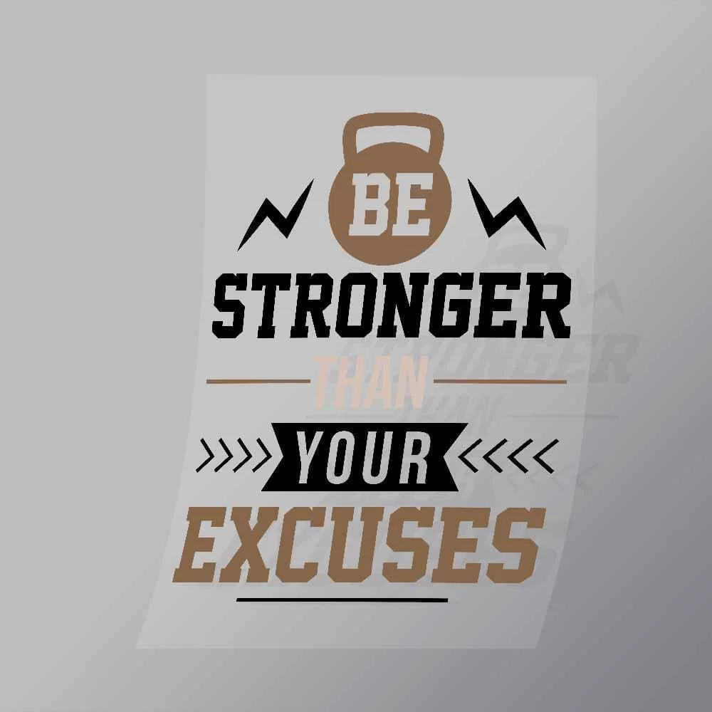 A great Be Stronger Than Your Excuses DTF (Direct to Film) Transfer available in multiple sizes. (Beased on width at artwork aspect ratio)