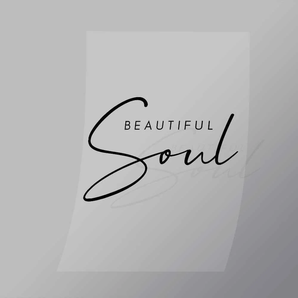 A great Beautiful Soul DTF (Direct to Film) Transfer available in multiple sizes. (Beased on width at artwork aspect ratio)