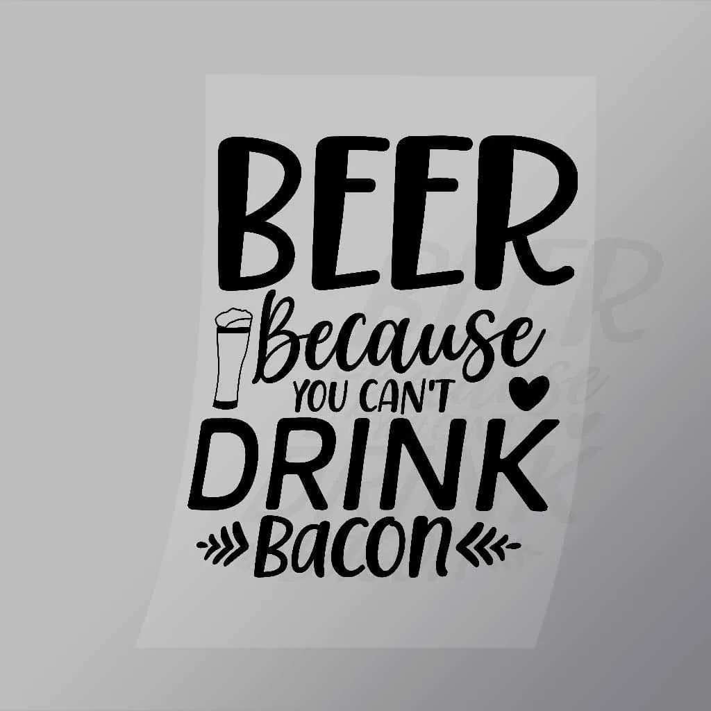 A great Beer Because You Cant Drink Bacon Black DTF (Direct to Film) Transfer available in multiple sizes. (Beased on width at artwork aspect ratio)