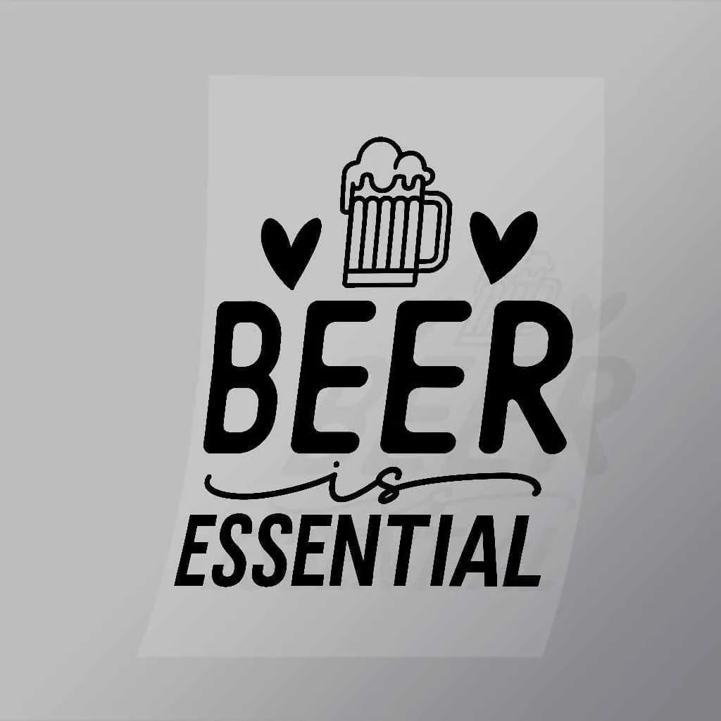 A great Beer Is Essential Black DTF (Direct to Film) Transfer available in multiple sizes. (Beased on width at artwork aspect ratio)