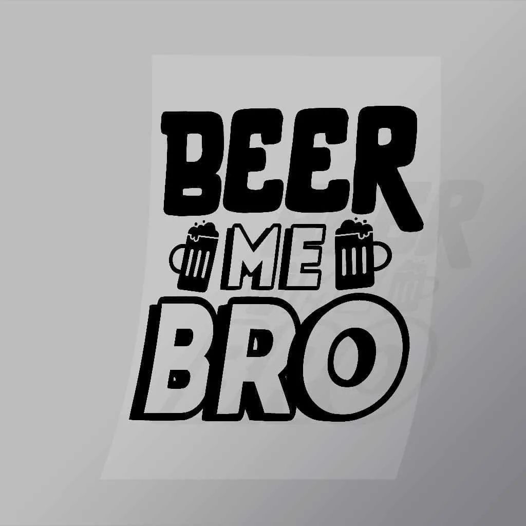 A great Beer Me Bro Black DTF (Direct to Film) Transfer available in multiple sizes. (Beased on width at artwork aspect ratio)