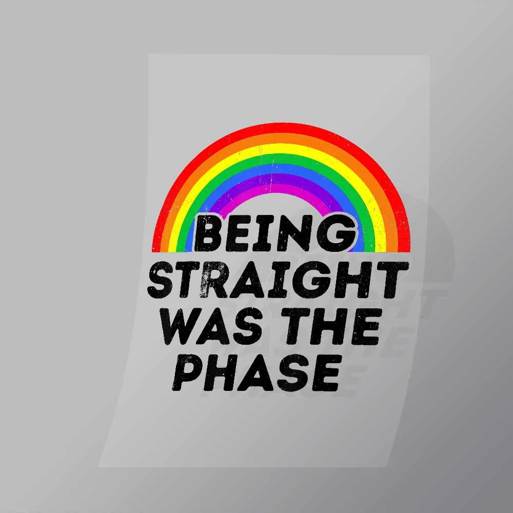 A great Being Straight Was The Phase DTF (Direct to Film) Transfer available in multiple sizes. (Beased on width at artwork aspect ratio)