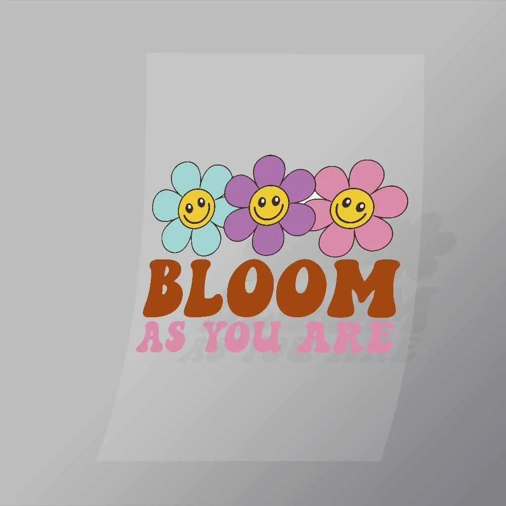 A great Bloom As You Are DTF (Direct to Film) Transfer available in multiple sizes. (Beased on width at artwork aspect ratio)