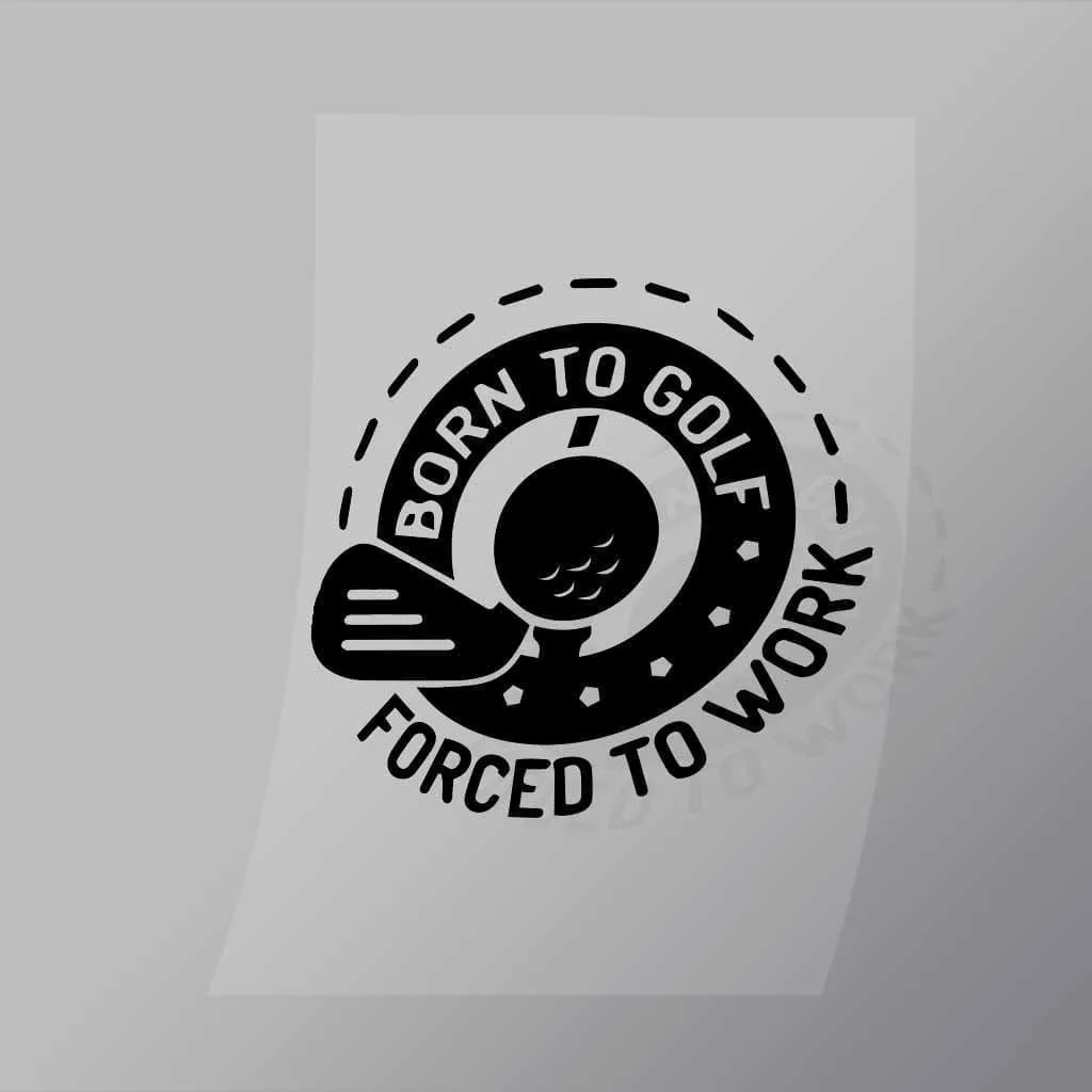 A great Born To Golf Forced To Work DTF (Direct to Film) Transfer available in multiple sizes. (Beased on width at artwork aspect ratio)