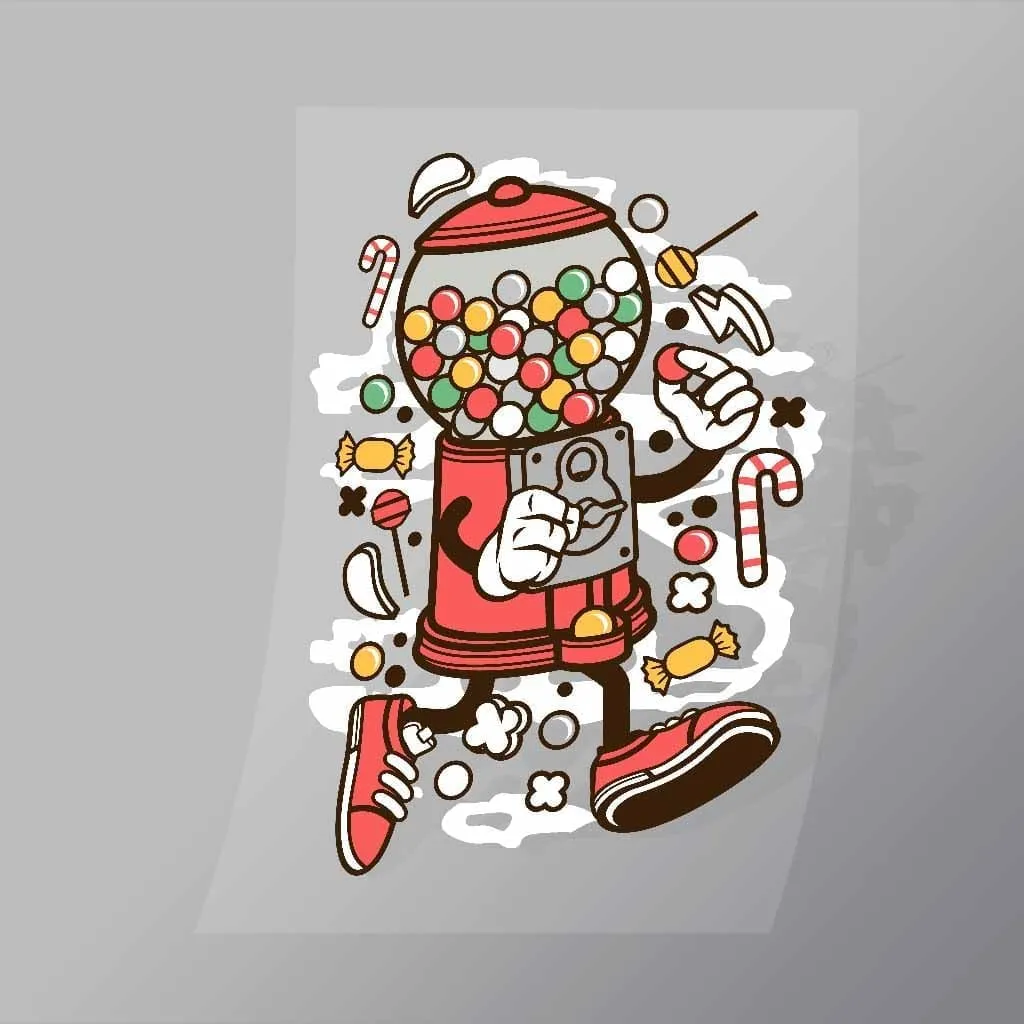 A great Candy Machine DTF (Direct to Film) Transfer available in multiple sizes. (Beased on width at artwork aspect ratio)