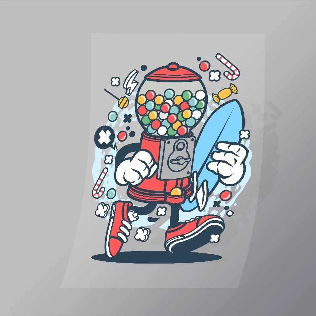 A great Candy Machine Surfer DTF (Direct to Film) Transfer available in multiple sizes. (Beased on width at artwork aspect ratio)