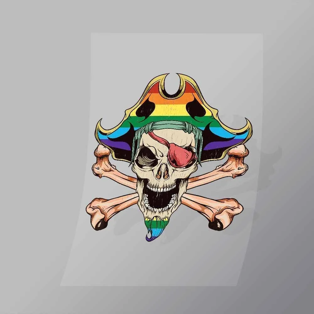 A great Captain Crossbones DTF (Direct to Film) Transfer available in multiple sizes. (Beased on width at artwork aspect ratio)