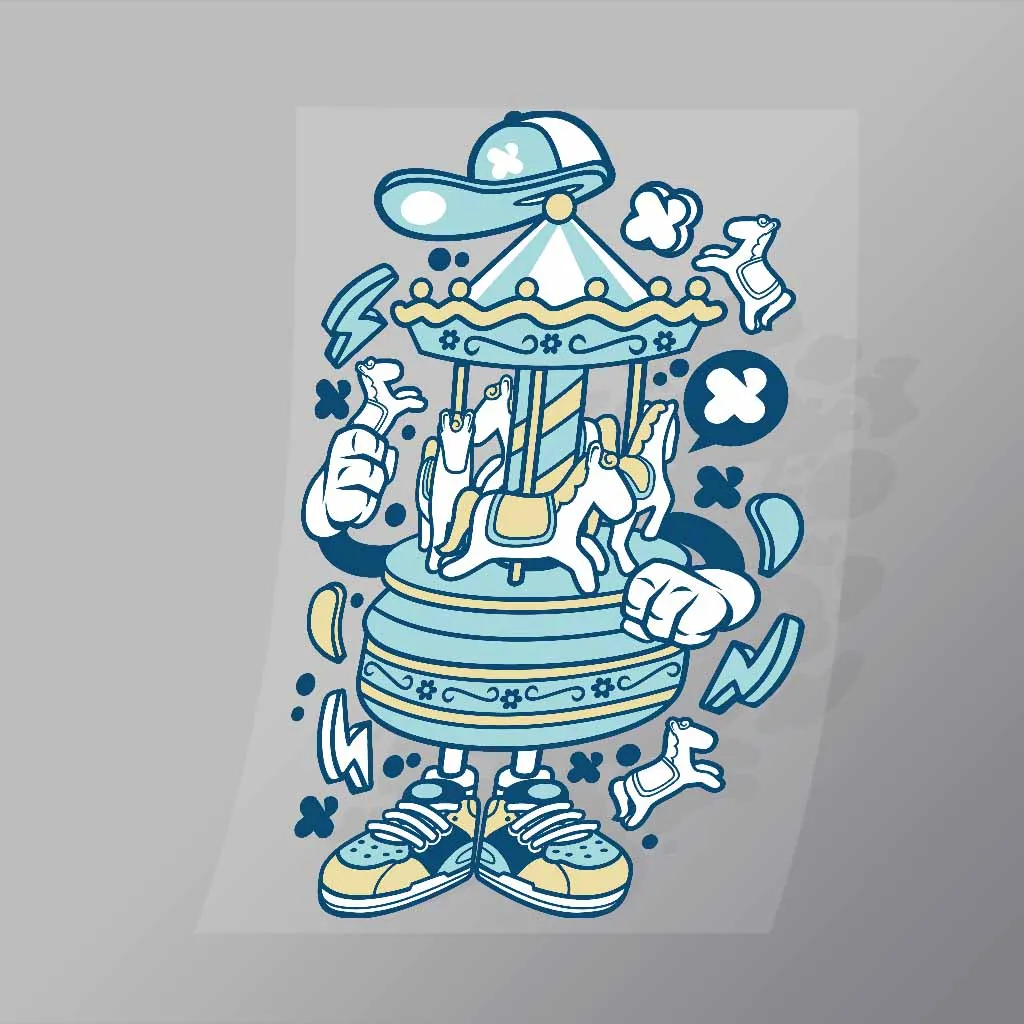 A great Carousel DTF (Direct to Film) Transfer available in multiple sizes. (Beased on width at artwork aspect ratio)