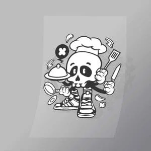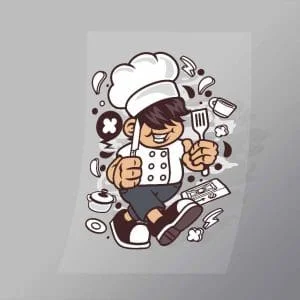 A great Chef Running DTF (Direct to Film) Transfer available in multiple sizes. (Beased on width at artwork aspect ratio)
