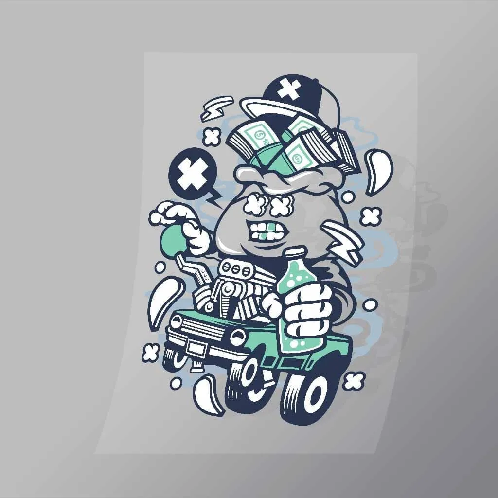 A great Dollar Hotrod DTF (Direct to Film) Transfer available in multiple sizes. (Beased on width at artwork aspect ratio)