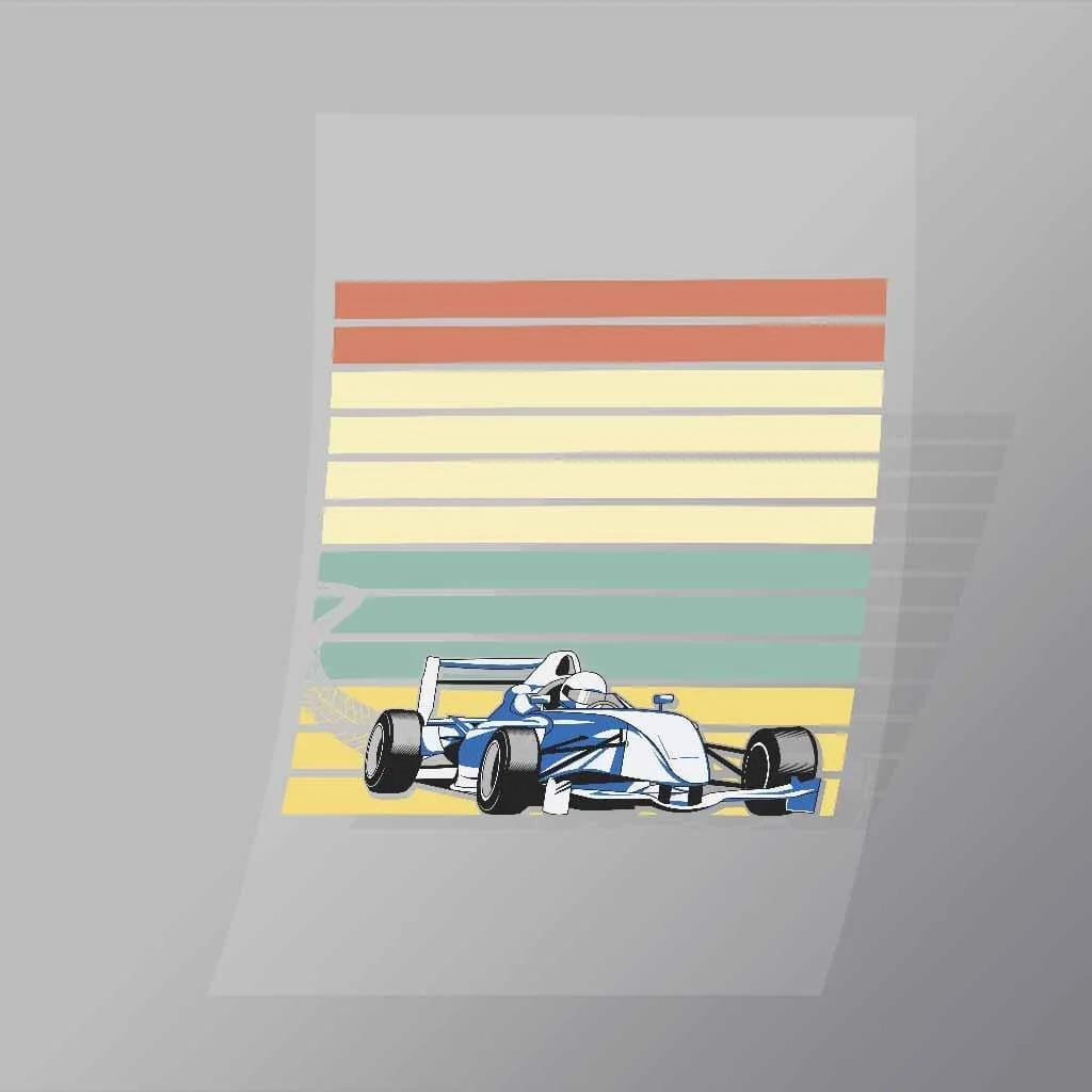 A great Formula 1 DTF (Direct to Film) Transfer available in multiple sizes. (Beased on width at artwork aspect ratio)