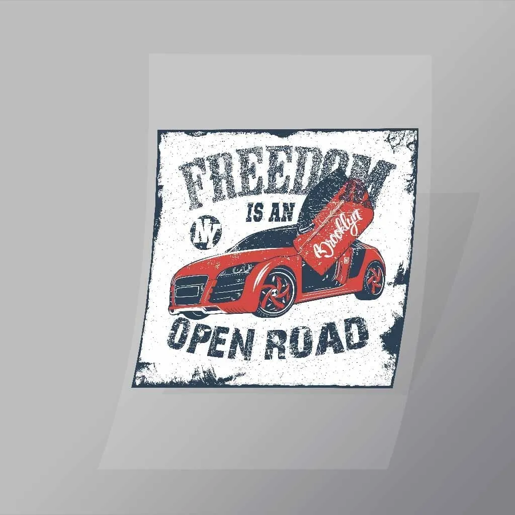 A great Freedom Is An Open Road DTF (Direct to Film) Transfer available in multiple sizes. (Beased on width at artwork aspect ratio)