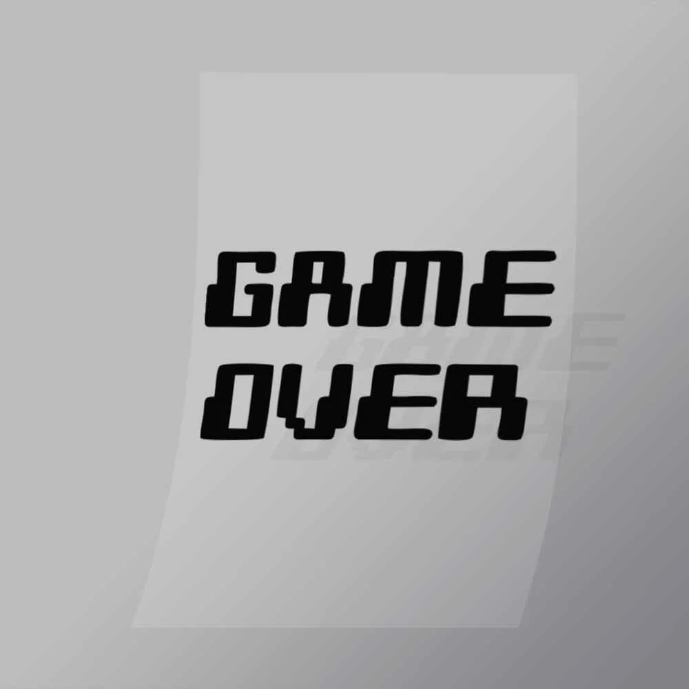 A great Game Over DTF (Direct to Film) Transfer available in multiple sizes. (Beased on width at artwork aspect ratio)