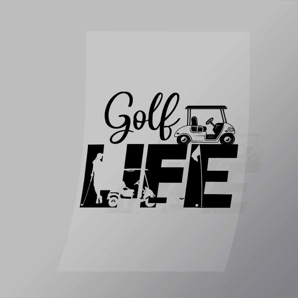 A great Golf Life Black DTF (Direct to Film) Transfer available in multiple sizes. (Beased on width at artwork aspect ratio)
