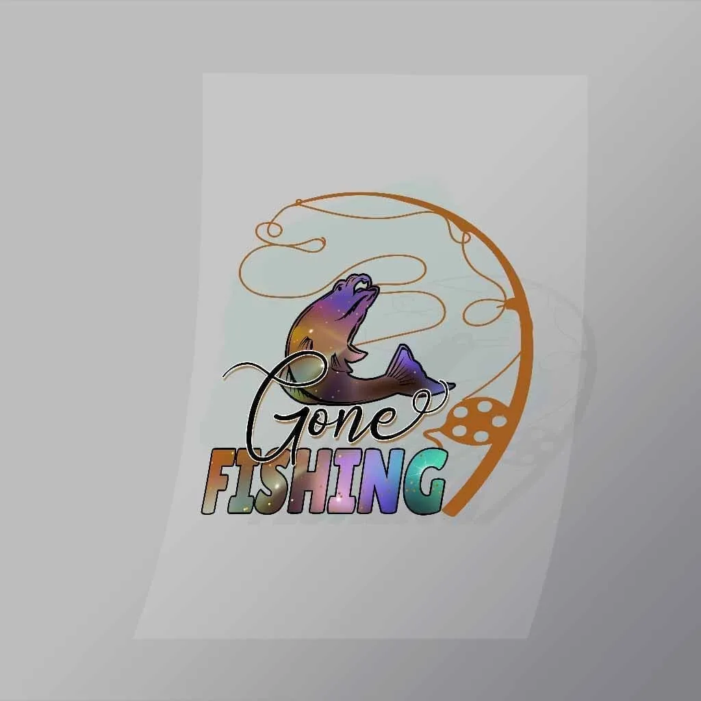 A great Gone Fishing Galaxy DTF (Direct to Film) Transfer available in multiple sizes. (Beased on width at artwork aspect ratio)
