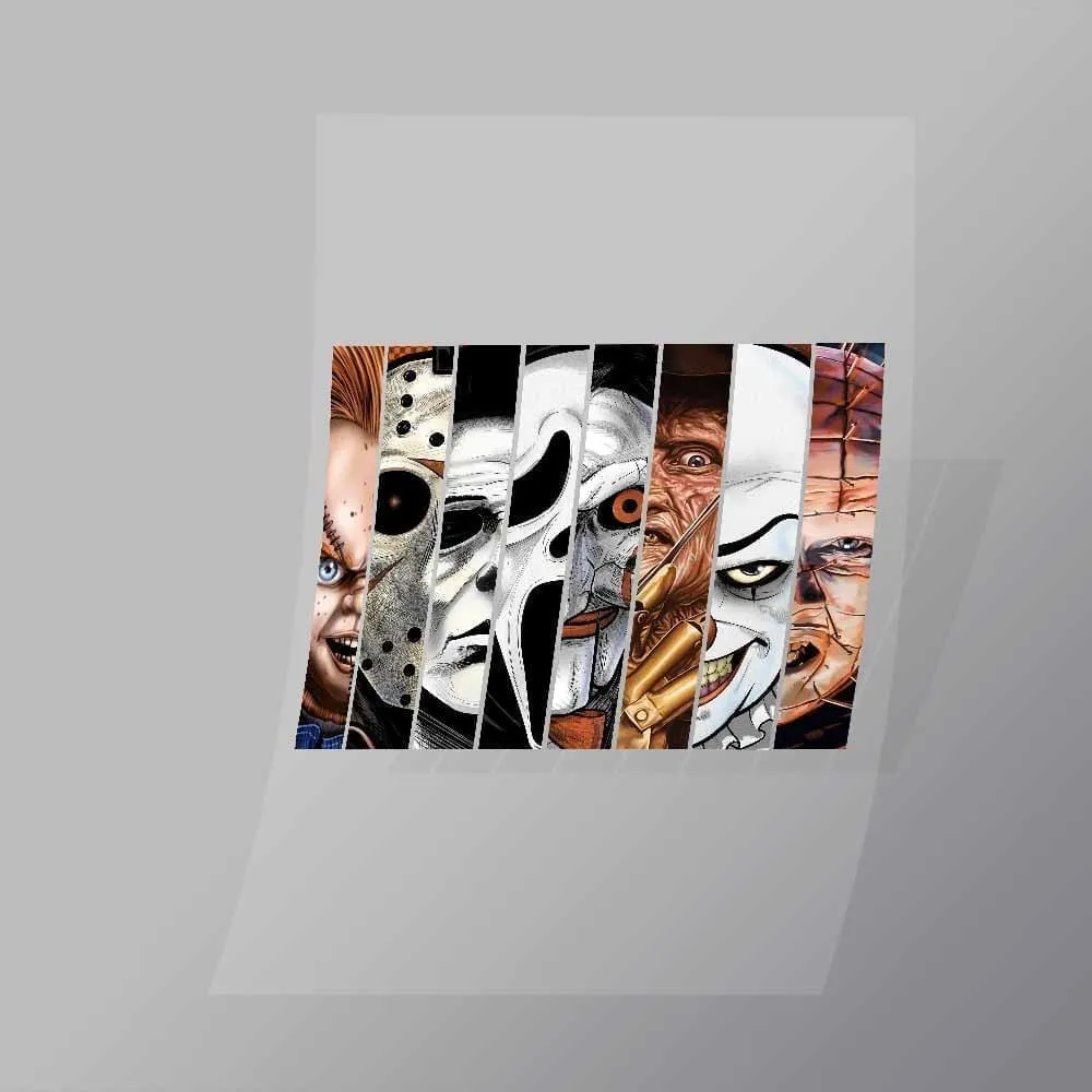 A great Horror Collage 1 DTF (Direct to Film) Transfer available in multiple sizes. (Beased on width at artwork aspect ratio)