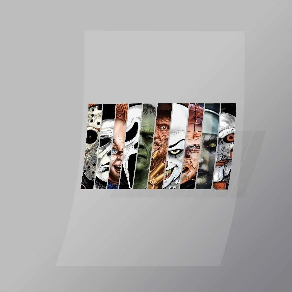 A great Horror Collage 2 DTF (Direct to Film) Transfer available in multiple sizes. (Beased on width at artwork aspect ratio)