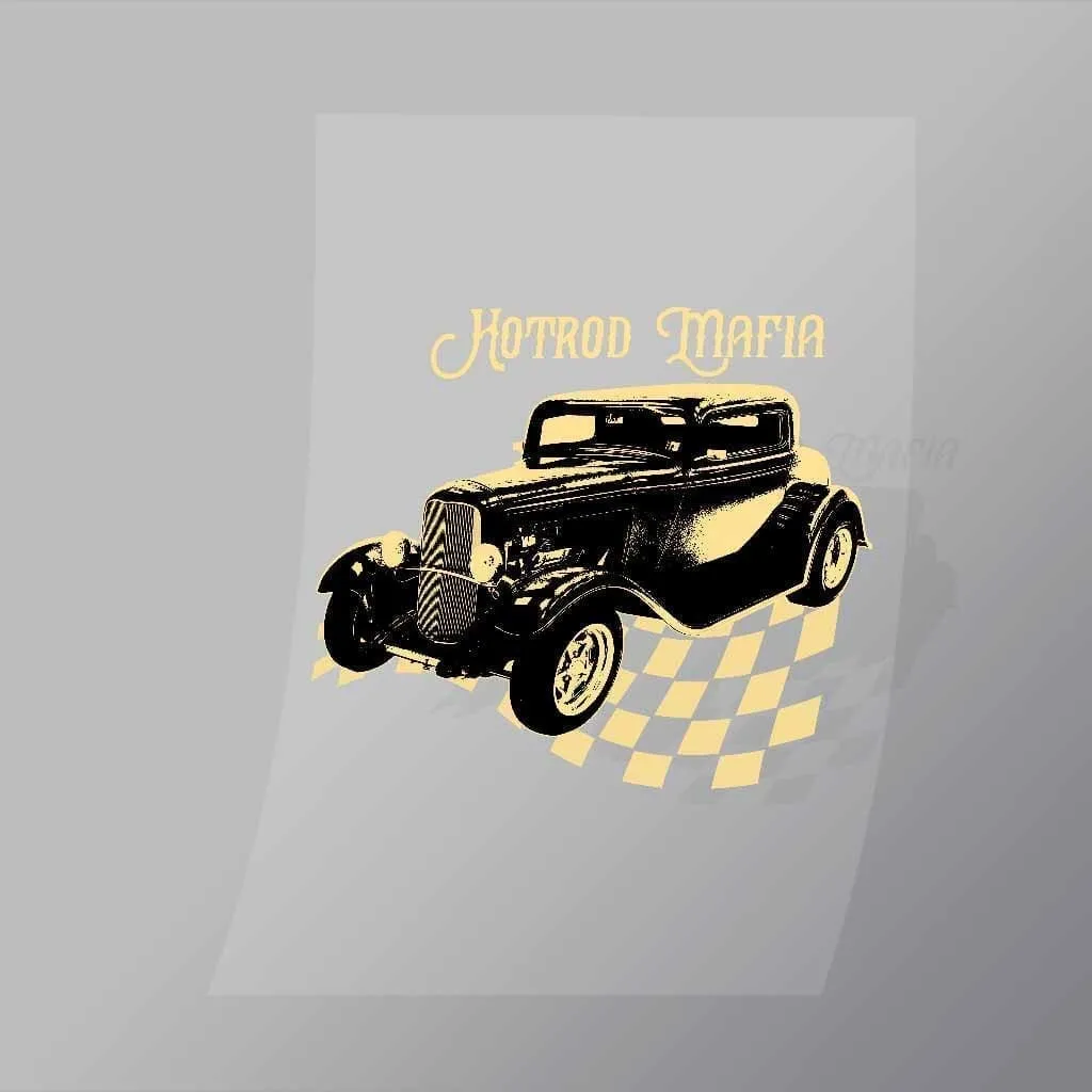 A great Hotrodd Mafia DTF (Direct to Film) Transfer available in multiple sizes. (Beased on width at artwork aspect ratio)