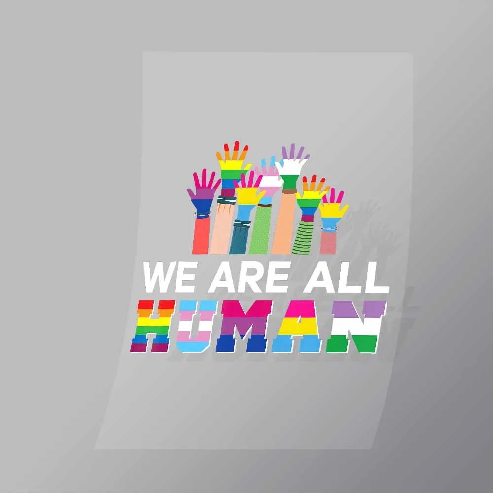 A great Human Pride Hands DTF (Direct to Film) Transfer available in multiple sizes. (Beased on width at artwork aspect ratio)