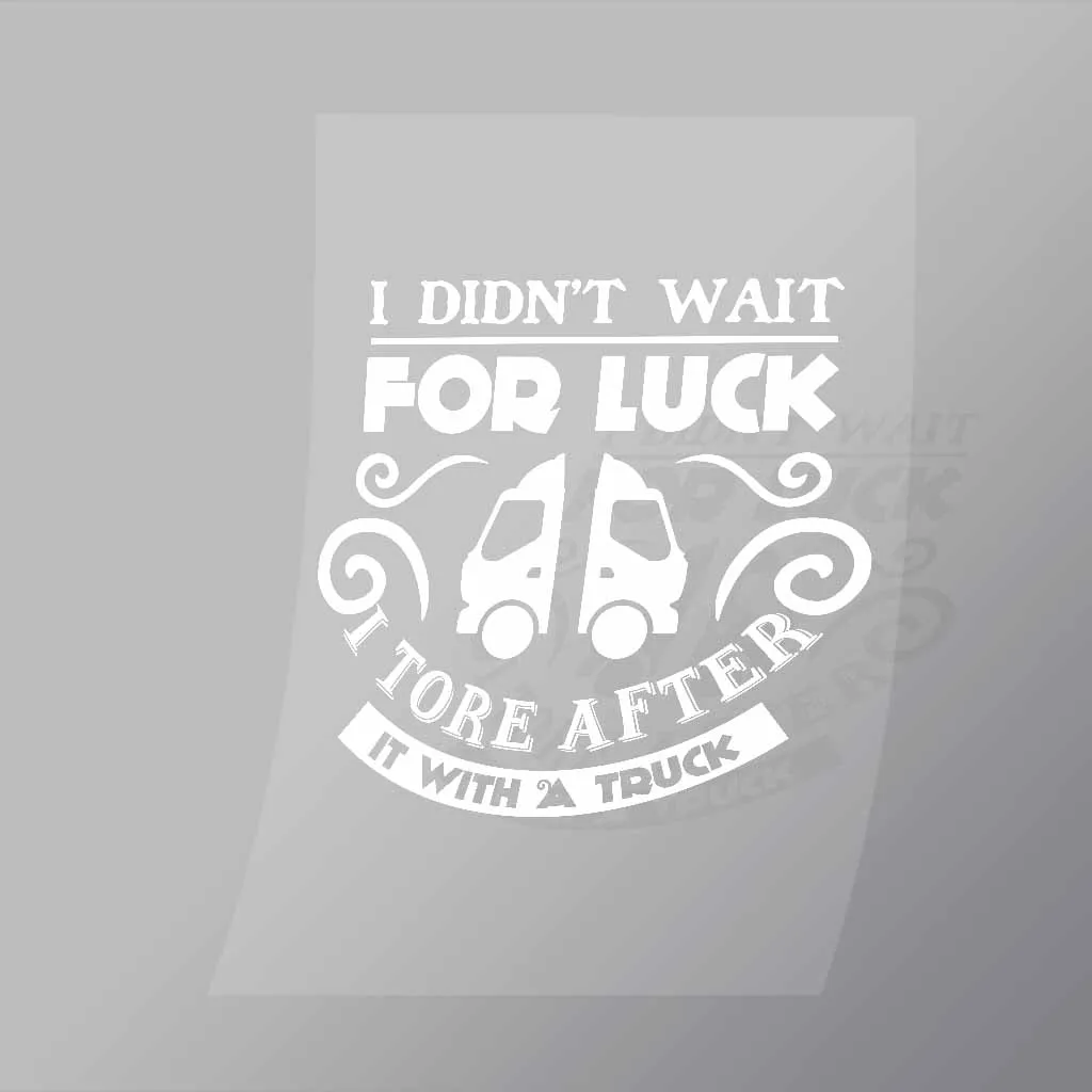 A great I Didnt Wait For Luck I Tore After It With A Truck DTF (Direct to Film) Transfer available in multiple sizes. (Beased on width at artwork aspect ratio)