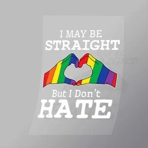 A great I May Be Stright No Hate DTF (Direct to Film) Transfer available in multiple sizes. (Beased on width at artwork aspect ratio)