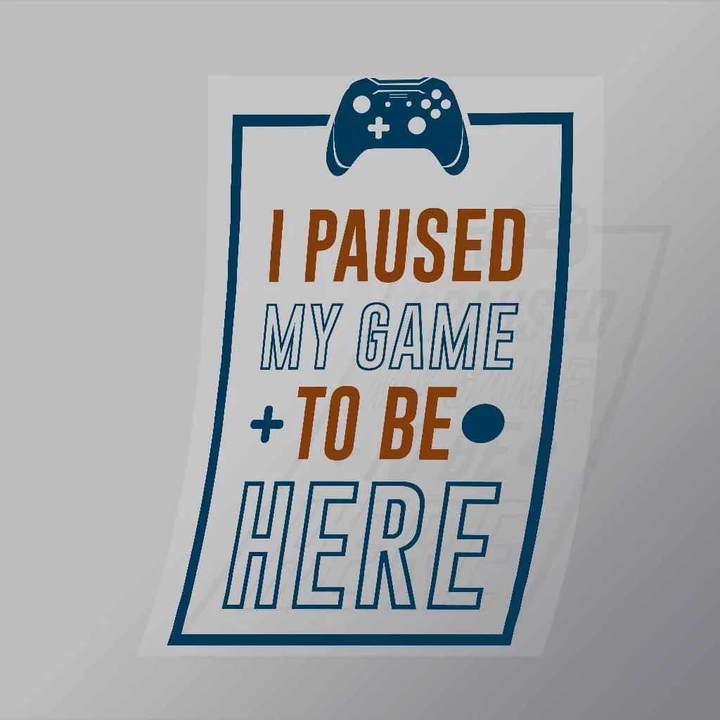 A great I Paused My Game To Be Here DTF (Direct to Film) Transfer available in multiple sizes. (Beased on width at artwork aspect ratio)