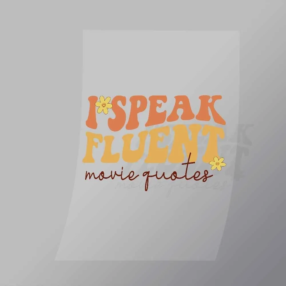 A great I Speak Fluent Movie Quotes DTF (Direct to Film) Transfer available in multiple sizes. (Beased on width at artwork aspect ratio)
