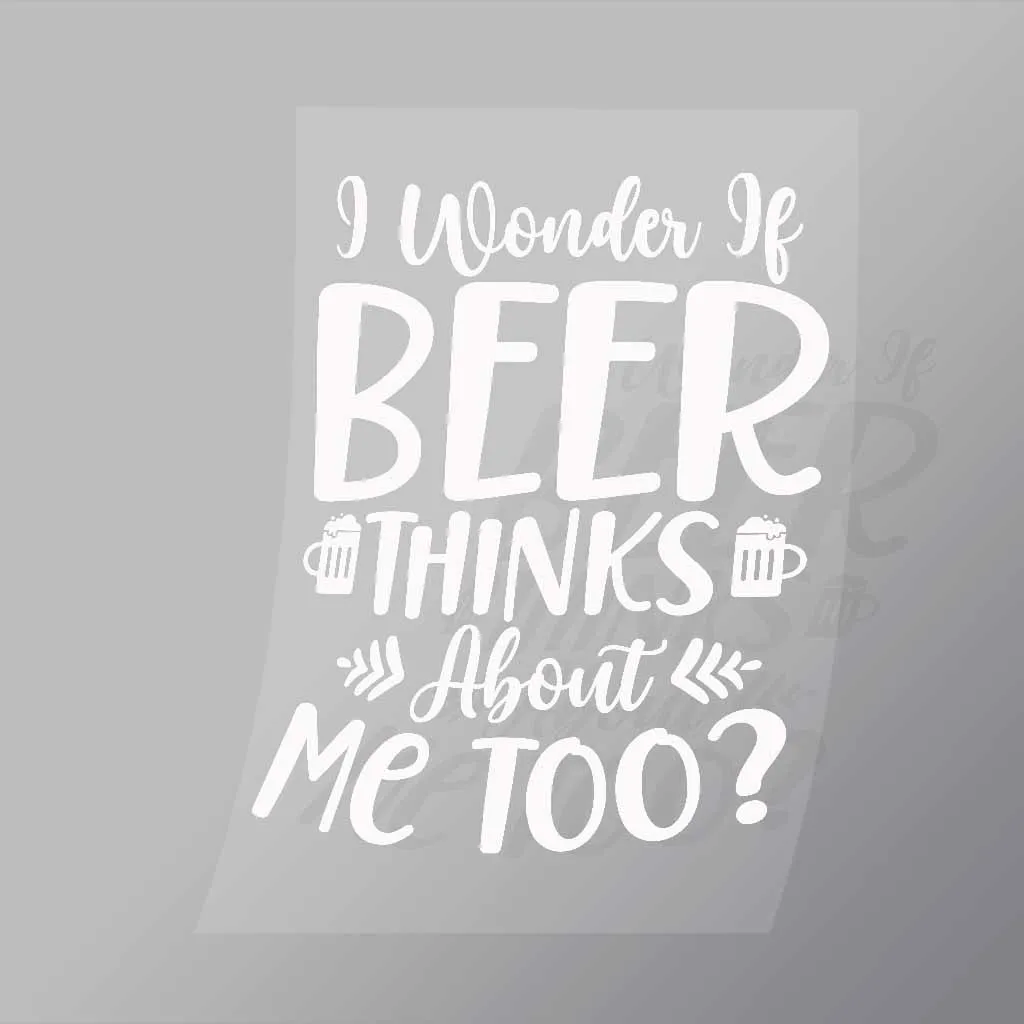 I Wonder Is Beer Thinks About Me Too White DTF Apparel Transfer
