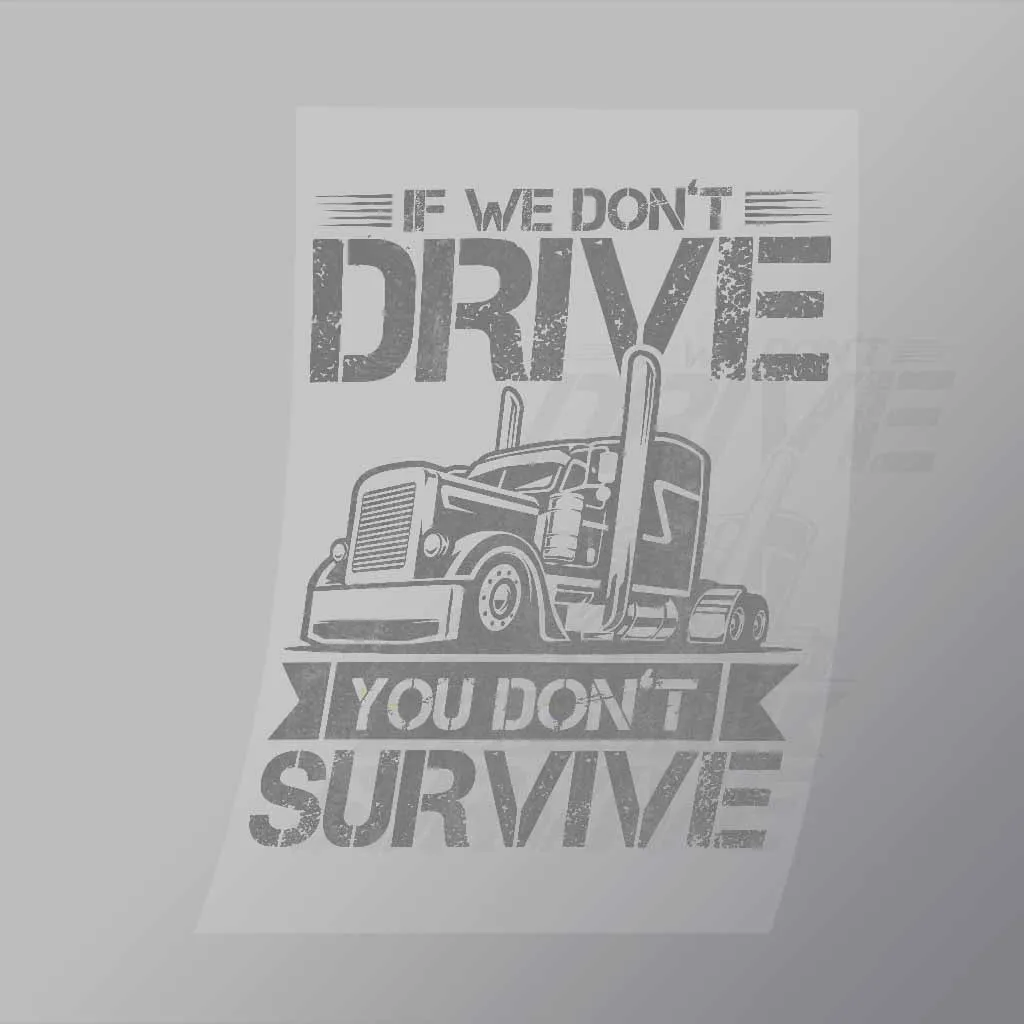 A great If We Dont Drive You Dont Survive DTF (Direct to Film) Transfer available in multiple sizes. (Beased on width at artwork aspect ratio)