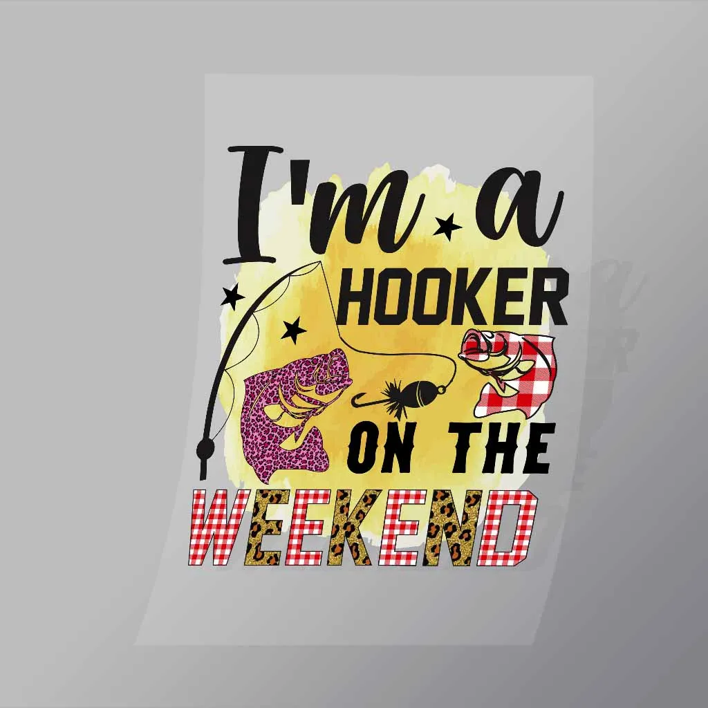 A great Im A Hooker On The Weekend DTF (Direct to Film) Transfer available in multiple sizes. (Beased on width at artwork aspect ratio)