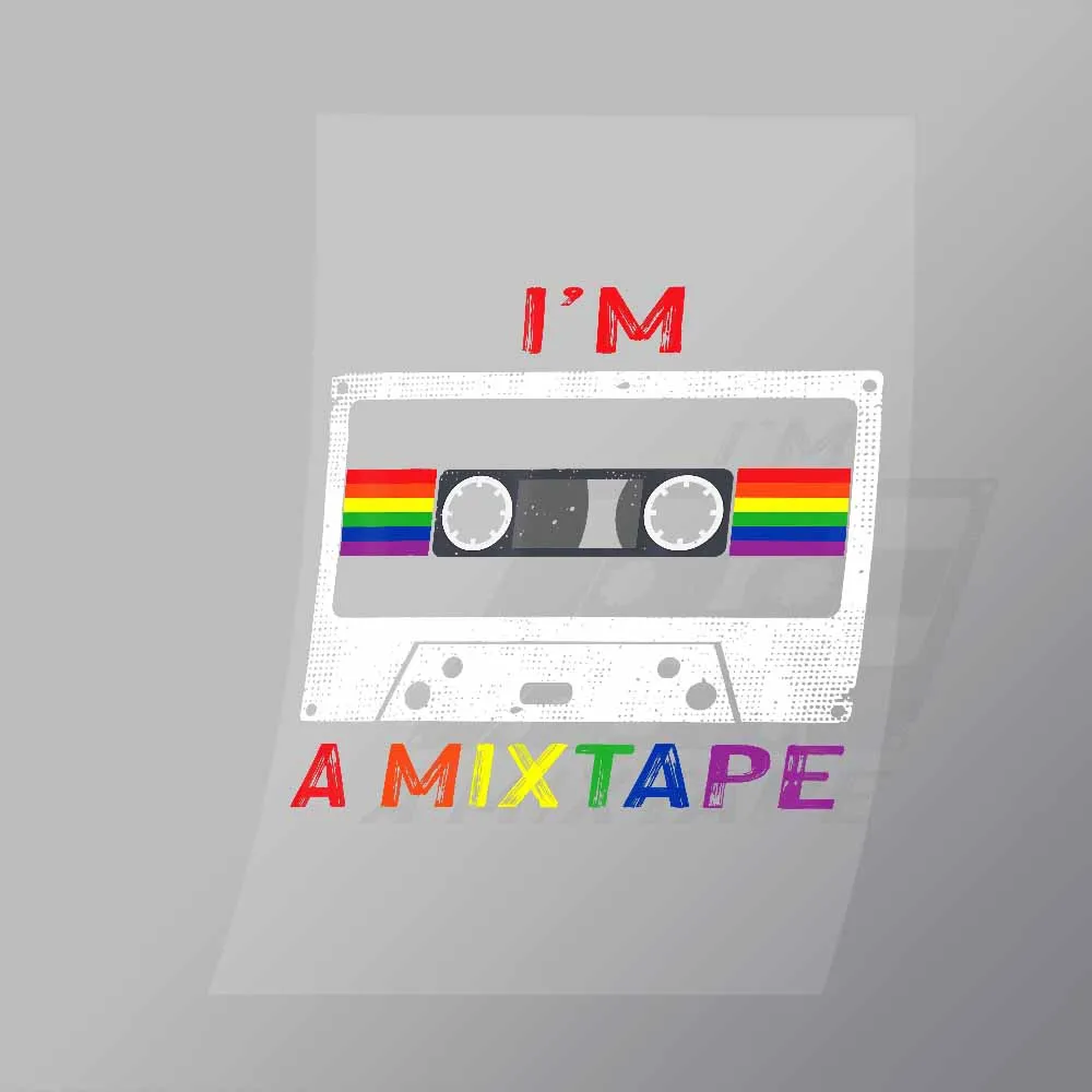 A great Im A Mixtape DTF (Direct to Film) Transfer available in multiple sizes. (Beased on width at artwork aspect ratio)