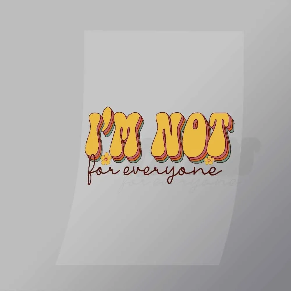 A great Im Not For Everyone DTF (Direct to Film) Transfer available in multiple sizes. (Beased on width at artwork aspect ratio)