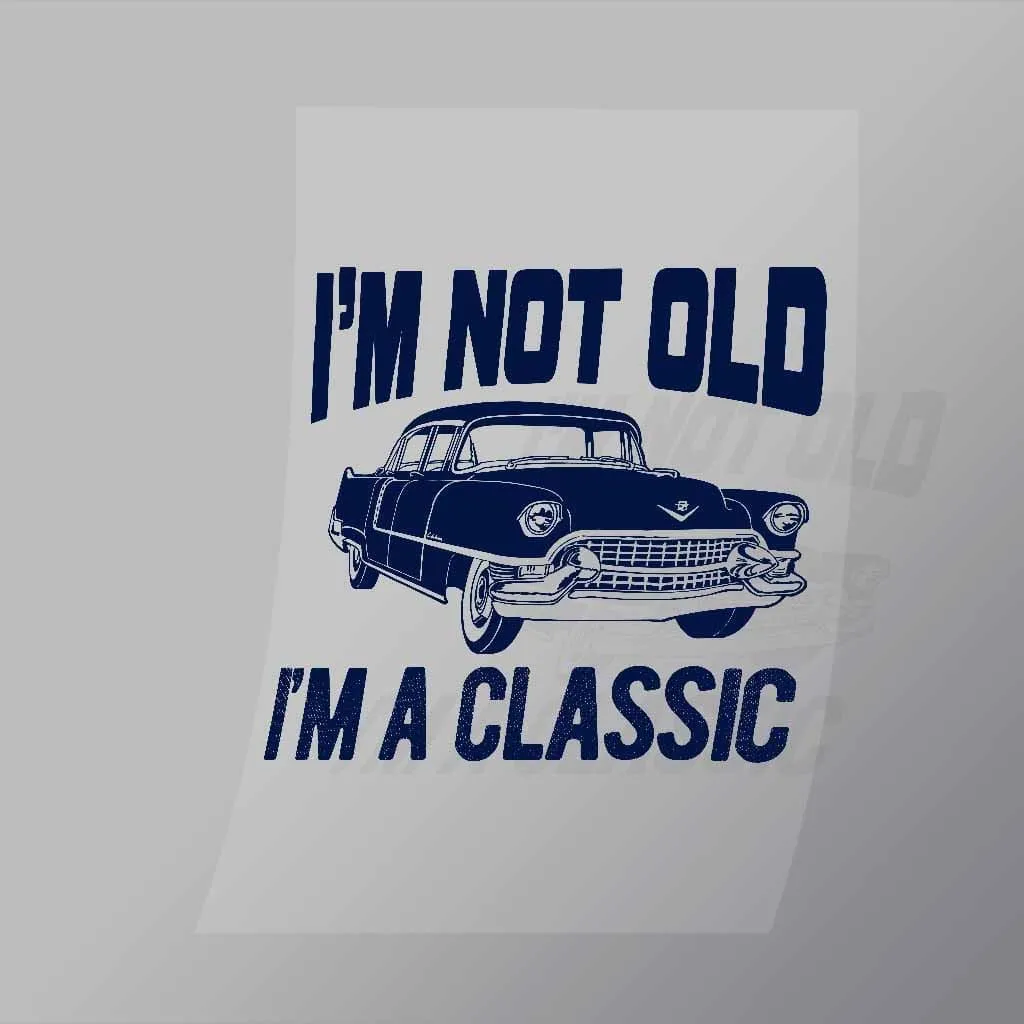 A great Im Not Old Im A Classic DTF (Direct to Film) Transfer available in multiple sizes. (Beased on width at artwork aspect ratio)