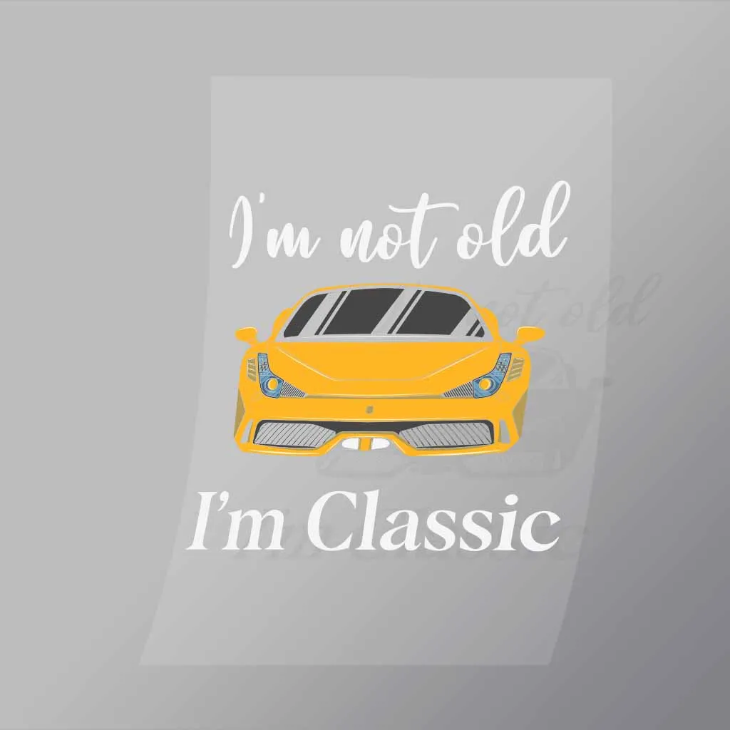 A great Im Not Old Im Classic DTF (Direct to Film) Transfer available in multiple sizes. (Beased on width at artwork aspect ratio)