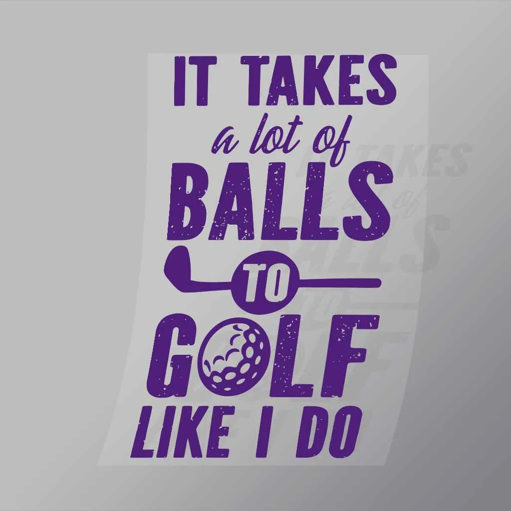 A great It Takes Alot Of Balls To Golf Like I Do Purple DTF (Direct to Film) Transfer available in multiple sizes. (Beased on width at artwork aspect ratio)