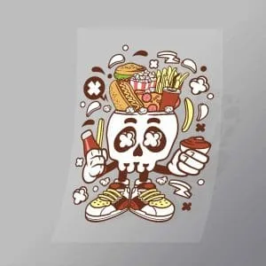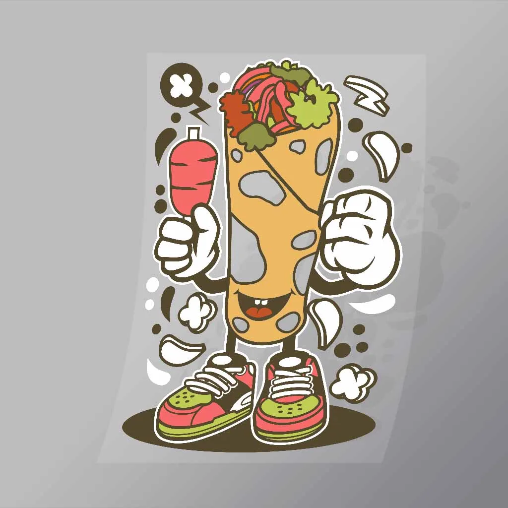 A great Kebab DTF (Direct to Film) Transfer available in multiple sizes. (Beased on width at artwork aspect ratio)