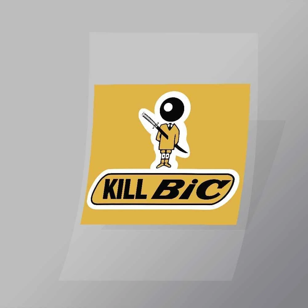 A great Kill Bic Brand Spoof DTF (Direct to Film) Transfer available in multiple sizes. (Beased on width at artwork aspect ratio)