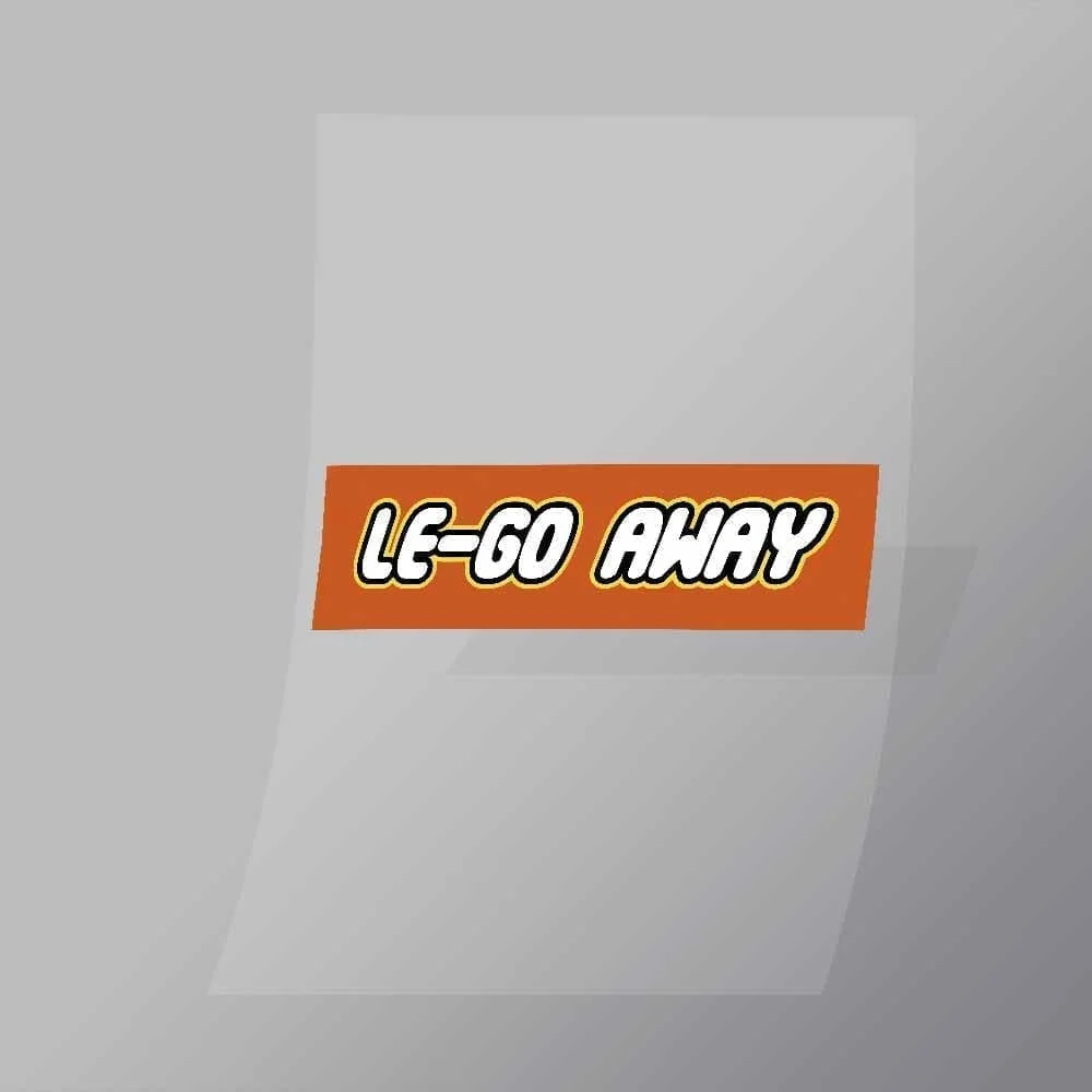 A great Le-Go Away Brand Spoof DTF (Direct to Film) Transfer available in multiple sizes. (Beased on width at artwork aspect ratio)