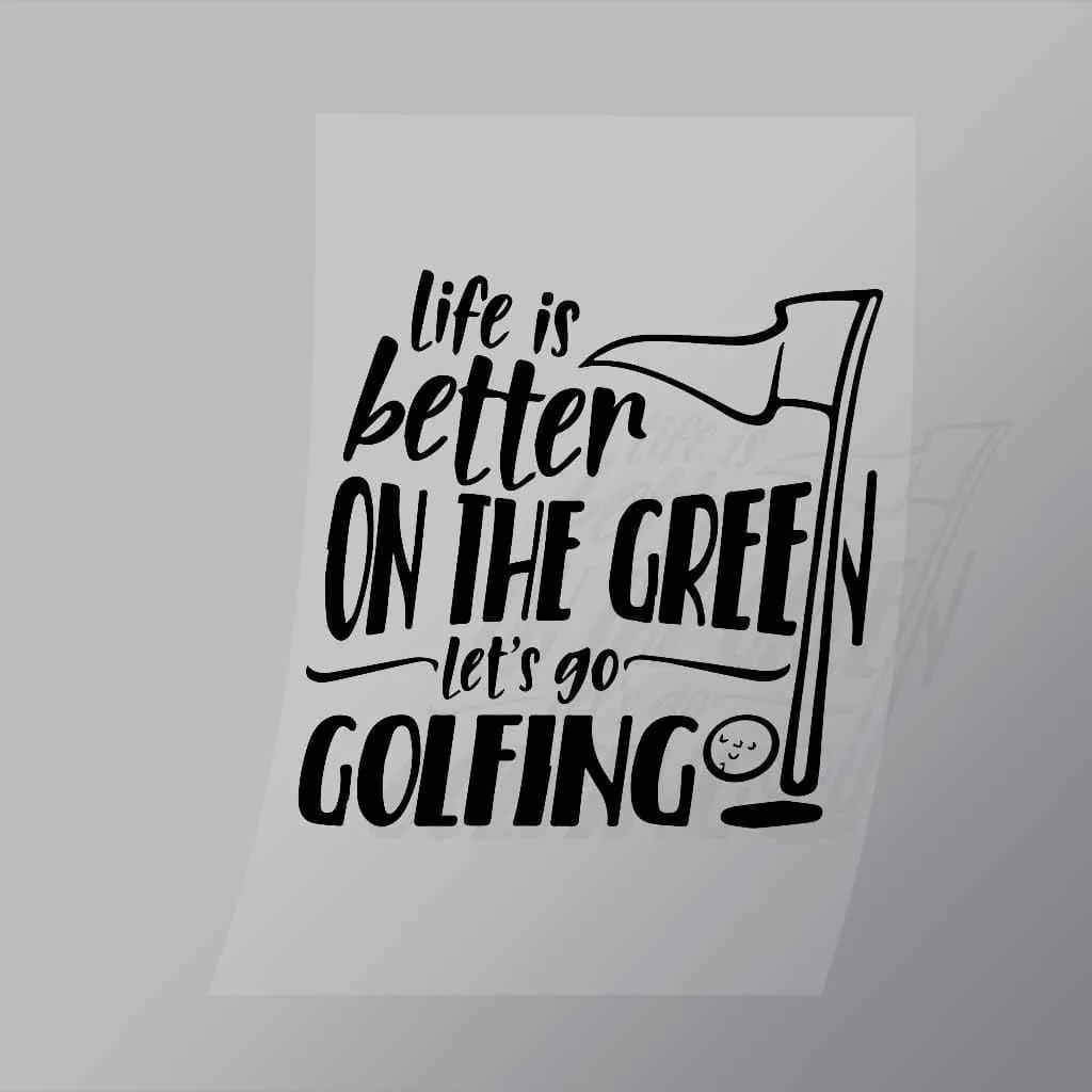 Life Is Better On The Green Lets Go Golfing DTF Apparel Transfer