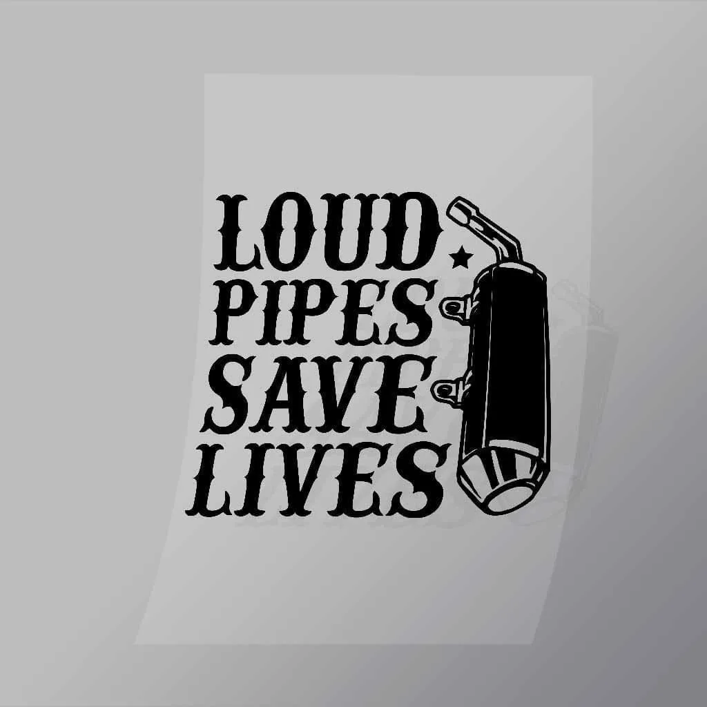 A great Loud Pipes Save Lives DTF (Direct to Film) Transfer available in multiple sizes. (Beased on width at artwork aspect ratio)