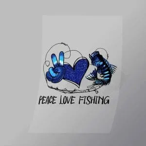 A great Love to Fish DTF (Direct to Film) Transfer available in multiple sizes. (Beased on width at artwork aspect ratio)