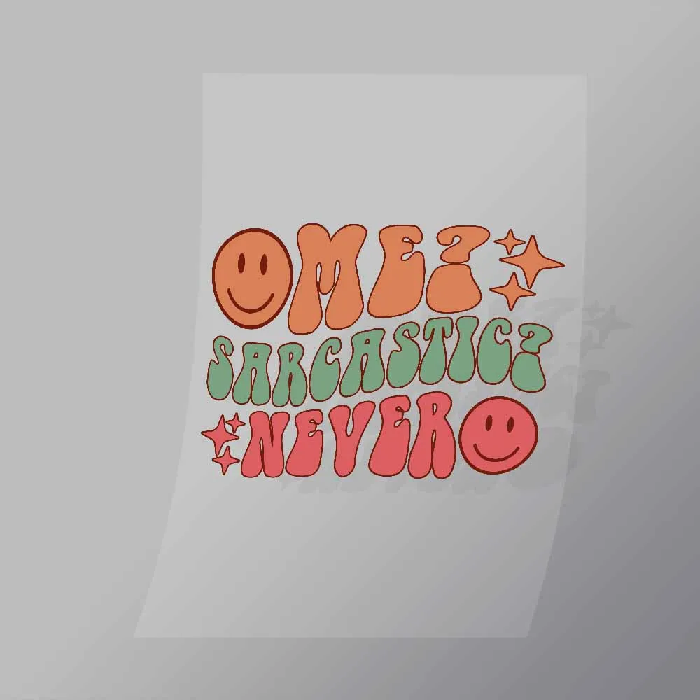 A great Me Sarcastic Never DTF (Direct to Film) Transfer available in multiple sizes. (Beased on width at artwork aspect ratio)