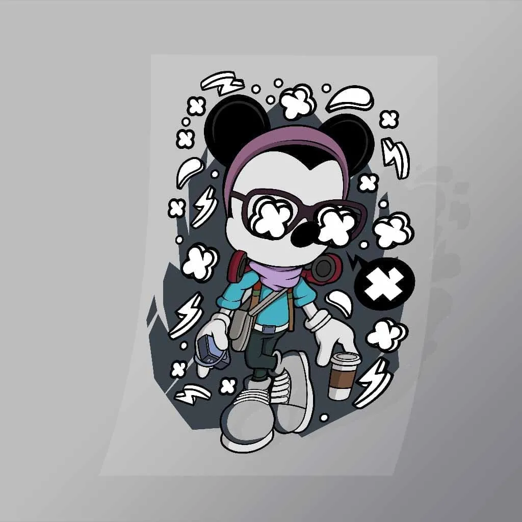 A great Mickey Hipster DTF (Direct to Film) Transfer available in multiple sizes. (Beased on width at artwork aspect ratio)