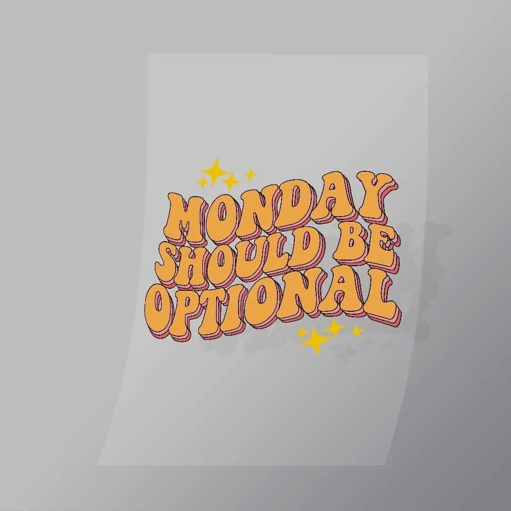 A great Monday Should Be Optional DTF (Direct to Film) Transfer available in multiple sizes. (Beased on width at artwork aspect ratio)