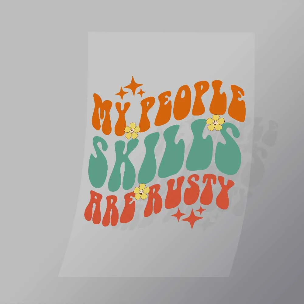 A great My People Skills Are Rusty DTF (Direct to Film) Transfer available in multiple sizes. (Beased on width at artwork aspect ratio)