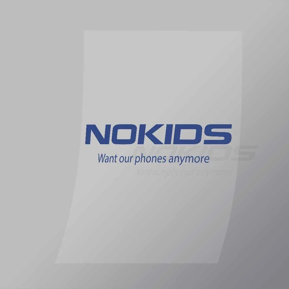 A great No Kids Buy Our Phones Brand Spoof DTF (Direct to Film) Transfer available in multiple sizes. (Beased on width at artwork aspect ratio)