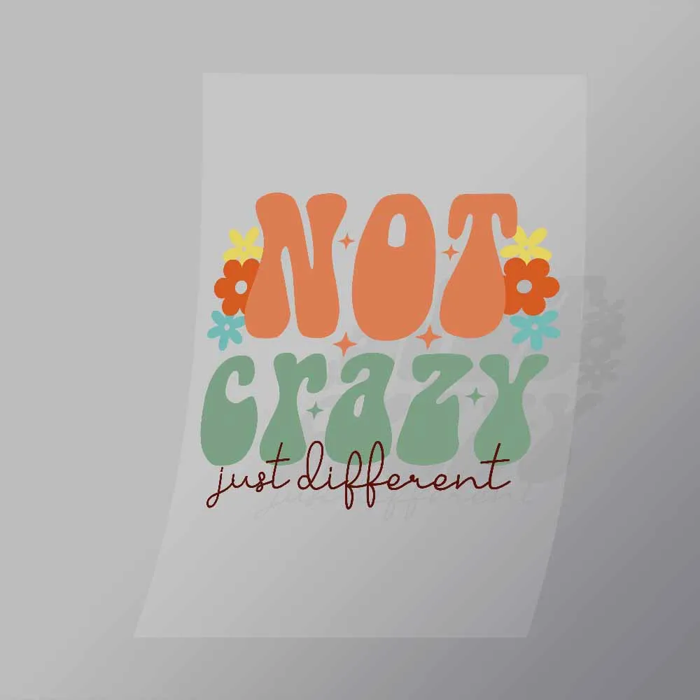 A great Not Crazy Just Different DTF (Direct to Film) Transfer available in multiple sizes. (Beased on width at artwork aspect ratio)